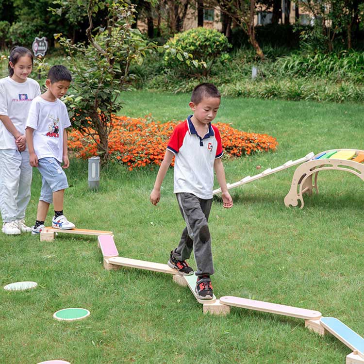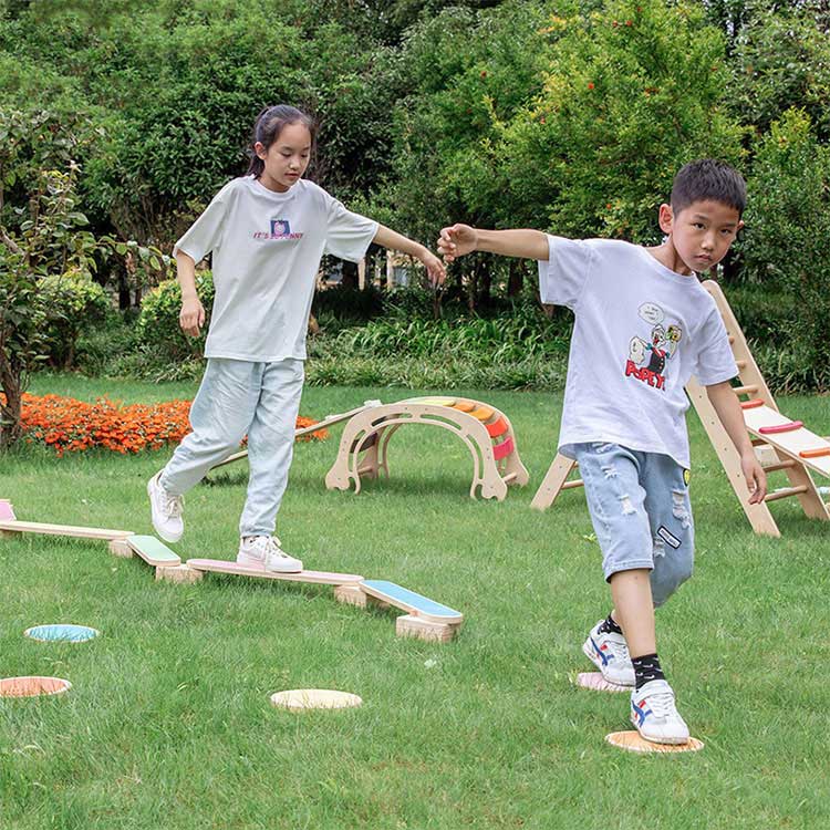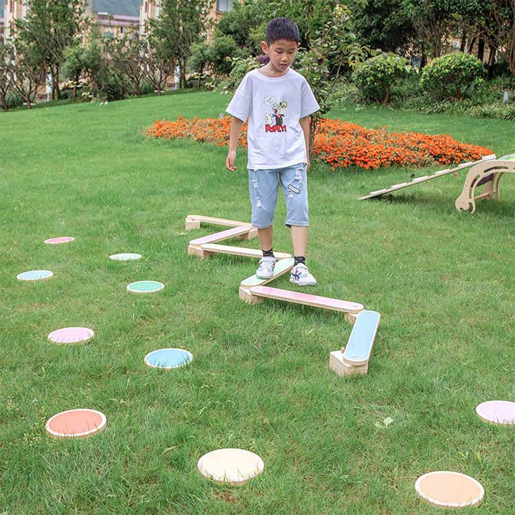 వుడెన్ బ్యాలెన్స్ బీమ్ మీ పిల్లలను నిరంతరం కదలడానికి మరియు శారీరక శ్రమ చేయడానికి ప్రేరేపిస్తుంది. ఇది ఇండోర్ మరియు అవుట్డోర్ రెండింటినీ ఉపయోగించవచ్చు. మేము 6 బహుళ-ఫంక్షనల్ సెట్ని తయారు చేసాము, ఇది మీ బిడ్డ మరియు అతని స్నేహితులు కలిసి ఆడుకునేలా చేస్తుంది. అదంతా సహజమైనది, రసాయనాలు లేకుండా.